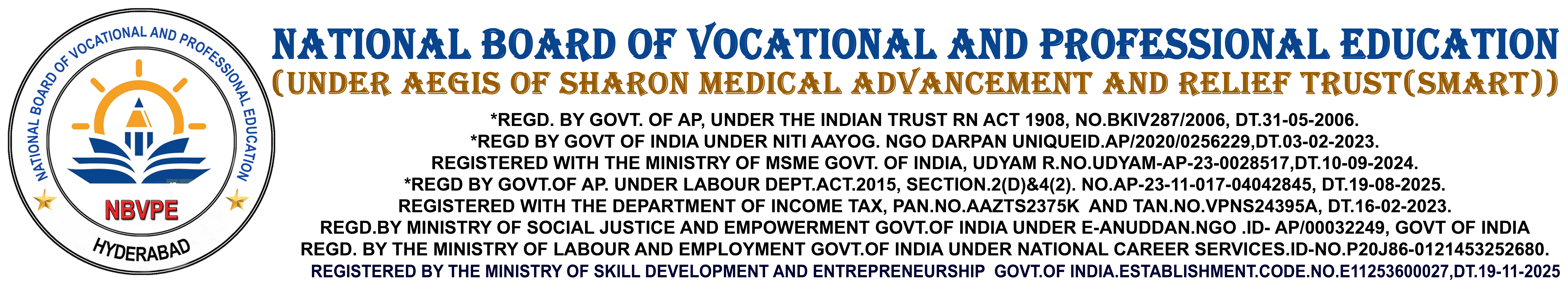 National Board Of Vocational and Professional Education (NBVPE) is under the Aegis of Sharon Medical Advancement and Relief Trust(SMART)